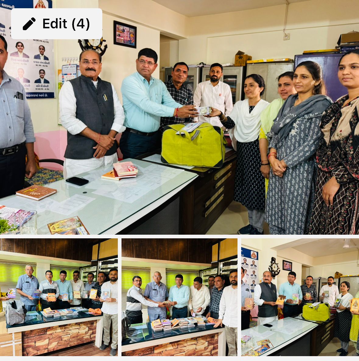 ચૌધરી સમાજના ભામાશા અને જે એમ કન્યા શૈક્ષણિક સંકુલ ગાંધીનગરના પ્રમુખ શ્રી હરિભાઈ વી ચૌધરી સાહેબના 75 વર્ષ નિમિત્તે કરેલ સંકલ્પના ભાગરૂપે ચૌધરી સમાજની 100 સંકુલોમાં આ રીતનું આયોજન કરેલ છે તે સંદર્ભે આજે નાથી બેન પચણભાઈ કન્યા કેળવણી મંડળ રૈયા અને શ્રી હિન્દવાણી આંજણા પટેલ કેળવણી મંડળ દિયોદર મુકામે આજે આંજણા સમાજના લેખકો દ્વારા લખાયેલ 100 પુસ્તકોની ભેટ સાથે એક લાખ અગિયાર હજાર (111000)રૂપિયા રોકડા સમાજની બંને સંસ્થાઓમાં દાન આપવામાં આવ્યું તે પ્રસંગે કન્યા સંકુલ રૈયા ના પ્રમુખ અણદાભાઈ આર પટેલ તથા સમગ્ર સ્ટાફ તેમજ દિયોદર આદર્શ વિદ્યાલય ના નિયામક લાલજીભાઈ તેમજ સમગ્ર સ્ટાફ ઉપસ્થિત રહી ભેટ સ્વીકારવામાં આવી અને શેઠ શ્રી હરીભાઈ ના આ ઉમદા કાર્ય ને બિરદાવવામાં આવ્યું