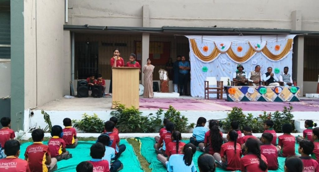 श्री के. बी. देसाई अर्बुदा स्कूल, इडर में देश का 77वां गणतंत्र दिवस अत्यंत गौरव, आनंद और देशभक्ति के वातावरण में मनाया गया। इस विशेष अवसर पर RSS गांधीनगर विभाग के बौद्धिक प्रमुख डॉ. जिग्नेश कडिया तथा इडर तालुका सह कार्यवाह श्री संजयभाई ठाकोर अतिथि के रूप में उपस्थित रहे। पूरे कार्यक्रम का मुख्य विषय “पंच परिवर्तन” रखा गया था, जिसके माध्यम से विद्यार्थियों में राष्ट्र निर्माण के प्रति जिम्मेदारी और संकल्पबद्धता विकसित करने का प्रयास किया गया।