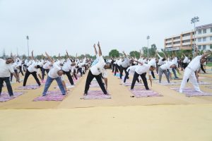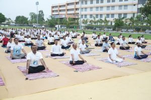જેમાં તેમણે દરેકને વિવિધ આસનો, શ્વાસ લેવાની તકનીકો (પ્રાણાયામ) અને ધ્યાન પદ્ધતિઓ દ્વારા માર્ગદર્શન આપ્યું હતું,જેમાં સ્વસ્થ અને સંતુલિત જીવનશૈલી માટે યોગનું મહત્વ દર્શાવવામાં આવ્યું હતું. આ કાર્યક્રમમાં તમામ કોલેજોના આચાર્યશ્રીઓ, ફેકલ્ટી સભ્યો, NSS કેડેટ્સ, સ્ટાફ અને વિદ્યાર્થીઓની સક્રિય ભાગીદારી જોવા મળી હતી. વિદ્યાર્થીઓના એક ગ્રુપે ઉત્કૃષ્ટ યોગ પિરામિડ રચના રજૂ કરી,