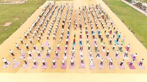 ગરવી તાકાત મહેસાણા : સાંકળચંદ પટેલ યુનિવર્સિટીનાં કેમ્પસનાં ઓપન એર થિયેટરમાં ખૂબ જ ઉત્સાહ અને આધ્યાત્મિક અનુભૂતિ સાથે ૧૧મો આંતરરાષ્ટ્રીય યોગ દિવસ ઉજવવામાં આવ્યો. આ કાર્યક્રમની શરૂઆત સવારે 6:45 વાગ્યે કરવામાં આવી જેમાં રાષ્ટ્રીય થીમ “સ્વયં અને સમાજ માટે યોગ” રાખવામાં આવી. આ કાર્યક્રમમાં યોગગુરુ આચાર્ય શ્રી કલ્પેશ મિસ્ત્રી સાહેબશ્રીને બોલાવવામાં આવ્યા.