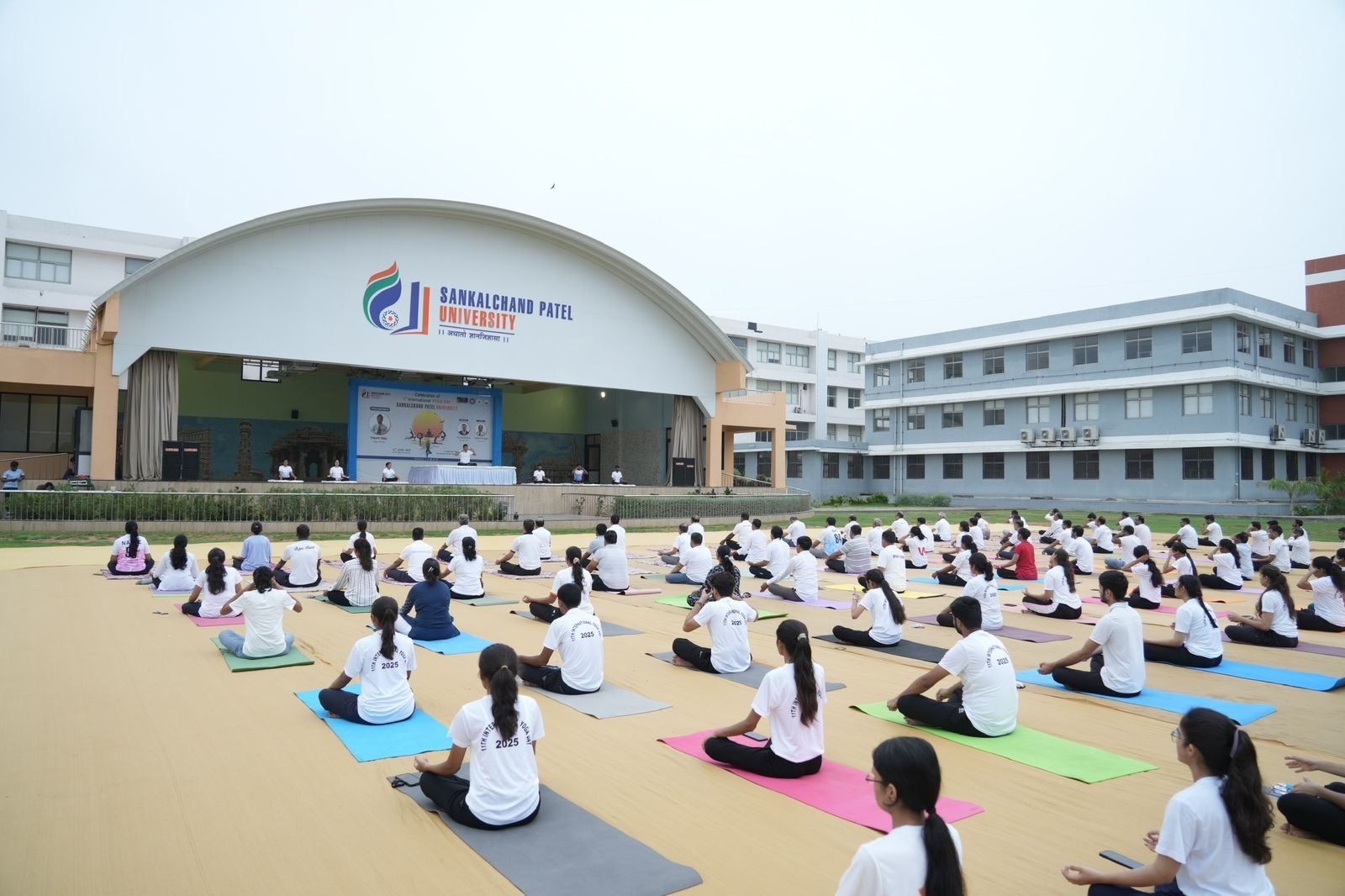 જે સંતુલન, શક્તિ અને એકતાનું પ્રતીક છે. આ કાર્યક્રમમાં સાંકળચંદ પટેલ યુનિવર્સિટિના પ્રમુખ શ્રી પ્રકાશભાઈ પટેલ અને પ્રોવોસ્ટ પ્રો. (ડૉ.) પી. એમ. ઉદાણી ઉપસ્થિત રહ્યા હતા. બંને મહાનુભાવોએ વ્યક્તિગત સુખાકારી અને રાષ્ટ્રીય સ્વાસ્થ્ય માટે યોગને દૈનિક જીવનમાં સમાવિષ્ટ કરવાના મહત્વ પર ભાર મૂક્યો. યુનિવર્સિટીએ નિયમિત યોગ સત્રો,