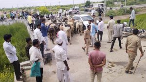 — ગાયોને સરકારી કચેરીમાં છુટ્ટી મૂકી દેવા આવતાં પોલીસે દરવાજો બંધ કરી અટકાવ્યા,આખરે ગાયોને કચેરીમાં પુરી :