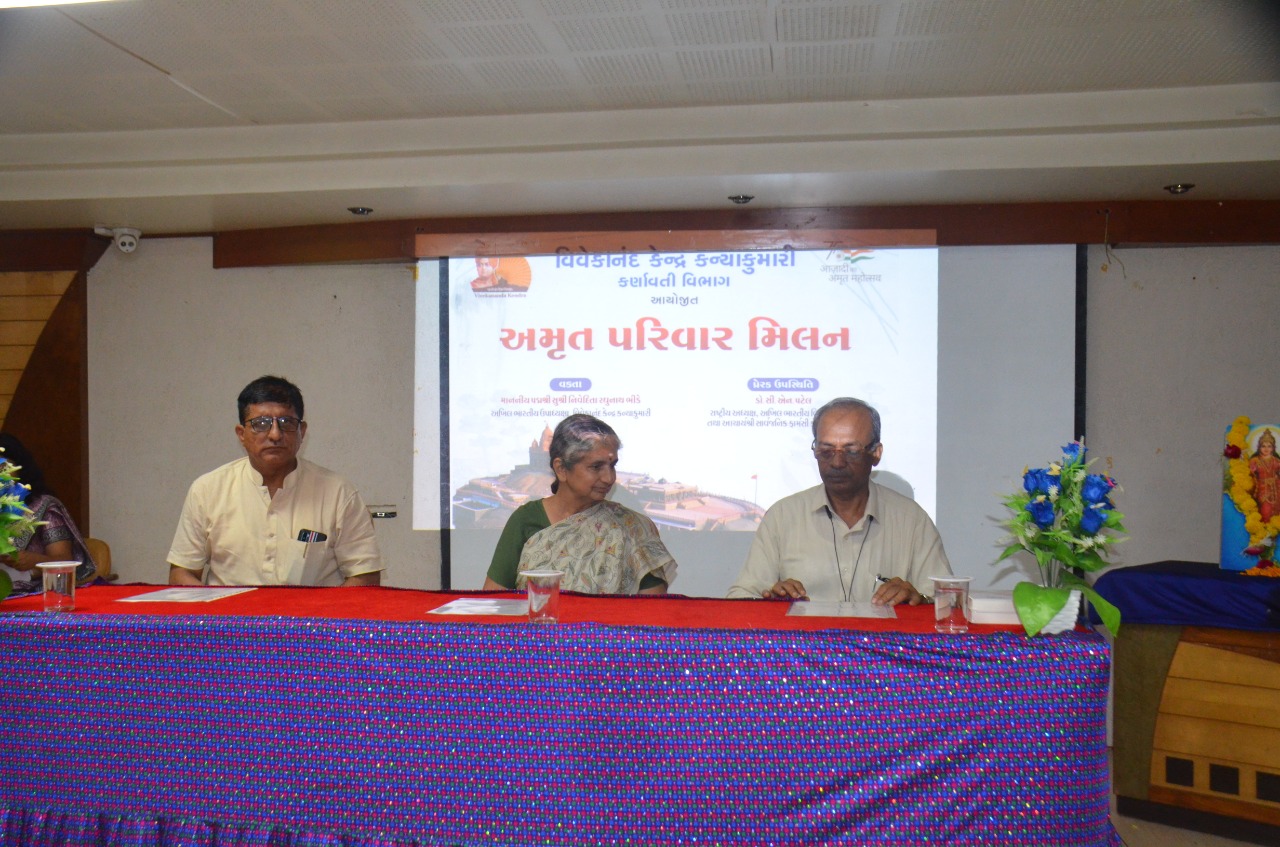 પરિવાર મિલનનું આયોજન કરવામાં આવ્યું હતું. વિવેકાનંદ કેન્દ્ર કન્યાકુમારીના અખિલ ભારતીય ઉપાધ્યક્ષા પદ્મક્ષી નિવેદિતા રઘુનાથ ભીંડે દ્વારા “સમાજના મૂળ આધાર પરીવાર” વિષય પર માર્ગદર્શન આપવામાં આવ્યું હતું. આ પ્રસંગે નવોદિતા ભીંડેએ જણાવ્યું હતું