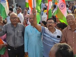 હિંમતનગર : હિંમતનગર માર્કેટયાર્ડથી શુક્રવારે સાંજે તિરંગાયાત્રાનું આયોજન કરવામાં આવ્યું. ભારતીય સેના દ્વારા પાકિસ્તાન પર કરાયેલી કાર્યવાહી ઓપરેશન સિંદૂરની સફળતાની ઉજવણીના ભાગરૂપે આ યાત્રા યોજાઈ. યાત્રા દરમિયાન દેશભક્તિના ગીતો વાગતા યાત્રા છાપરિયા ચાર રસ્તા, દુર્ગા બજાર અને પાંચ બત્તી થઈને ટાવર ચોક સુધી પહોંચી હતી. ટાવર ચોક ખાતે જિલ્લા ભાજપ પ્રમુખે ઉપસ્થિત લોકોને સંબોધ્યા હતા.