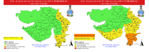 15મી ઓગસ્ટે બનાસકાંઠા, પાટણ, મહેસાણા, સાબરકાંઠા, ગાંધીનગર, અરવલ્લી, ખેડા, અમદાવાદ, આણંદ, પંચમહાલ, દાહોદ, મહિસાગર, વડોદરા, છોટા ઉદેપુર, નર્મદા, ભરૂચ, સુરત, ડાંગ, તાપી, નવસારી, વલસાડ, દમણ અને હાવલીમાં ભારે વરસાદની સંભાવના છે. મોટાભાગના જિલ્લાઓમાં તેજ પવન સાથે વાવાઝોડાની શક્યતા છે.