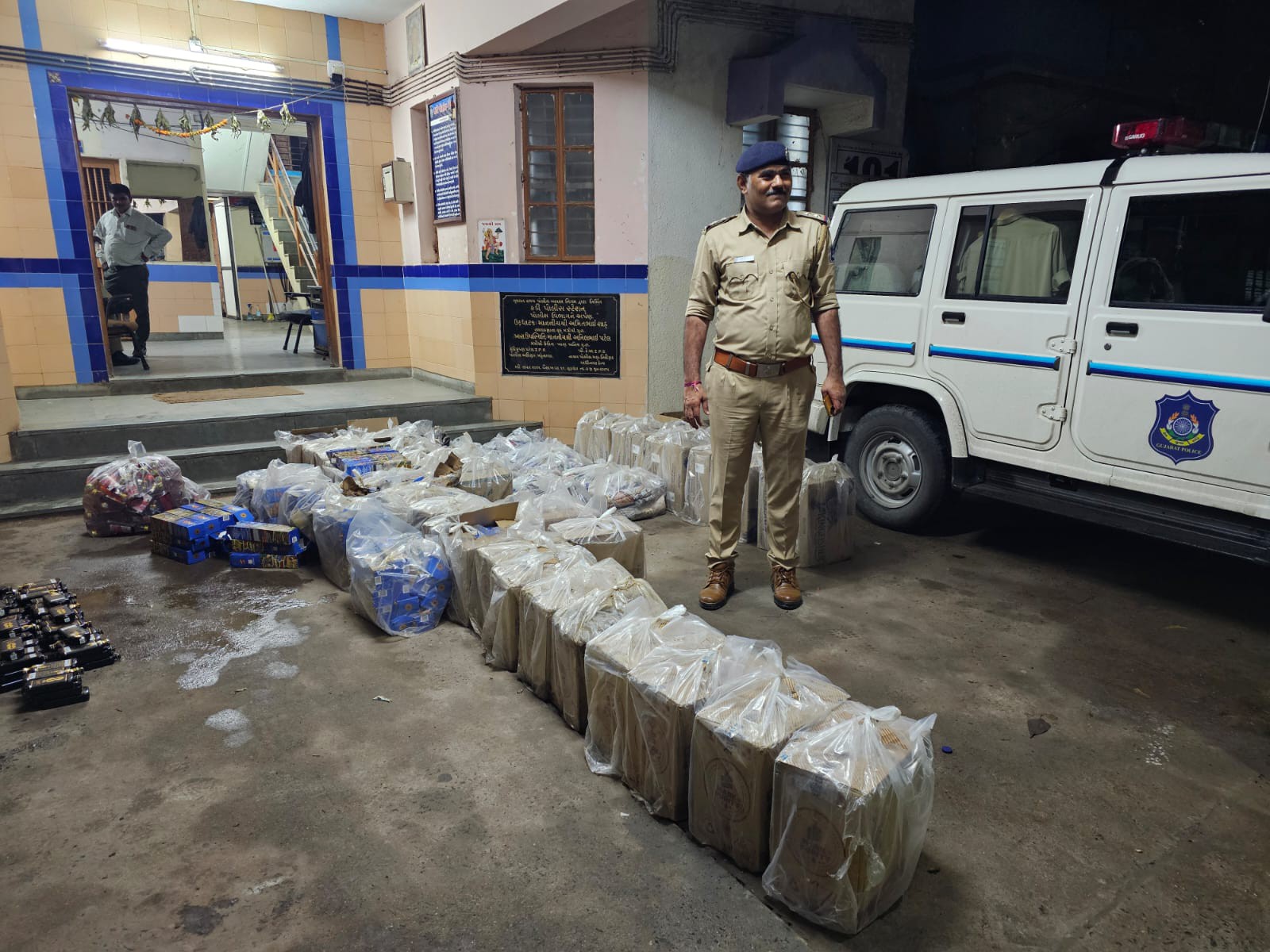 પોલીસે ટ્રકની તપાસ કરતાં તેમાંથી અલગ અલગ બ્રાન્ડની કુલ 9,43,720 રૂપિયાની કિંમતનો વિદેશી દારૂનો જથ્થો મળી આવ્યો ધરપકડ કરાયેલા કંડક્ટરે પૂછપરછમાં જણાવ્યું કે, આ દારૂનો જથ્થો રાજસ્થાનથી લાવવામાં આવ્યો અને કડીમાં કોઈને આપવાનો કોને આપવાનો હતો તેની જાણ ડ્રાઈવર સુરેશને હોવાનું તેણે જણાવ્યું પોલીસે બંને આરોપીઓ વિરુદ્ધ ગુનો નોંધી કુલ 19,58,720 રૂપિયાનો મુદ્દામાલ (દારૂ અને ટ્રક સહિત) જપ્ત કરીને વધુ કાર્યવાહી હાથ ધરી.