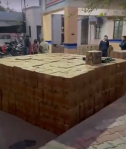 ગરવી તાકાત મહેસાણા : મહેસાણા જિલ્લાના કડી તાલુકાના કાહવા ગામ નજીક SMC દ્વારા કરવામાં આવેલ દરોડામાં ભારે માત્રામાં પ્રતિબંધિત IMFL દારૂનો જથ્થો ઝડપી લેવામાં આવ્યો PSI વી. એન. જાડેજાની આગેવાનીમાં થયેલા આ ઓપરેશનમાં કુલ રૂ. 1,88,43,700ના મુદામાલનો જથ્થો કબજે લેવામાં આવ્યો પોલીસે આપેલી માહિતી મુજબ કડી પોલીસ સ્ટેશન વિસ્તારમાં આવેલ કાહવા ગામ પાસે પ્રતિબંધક દારૂની હેરફેર થતી હોવાની બાતમીના આધારે દરોડો પાડવામાં આવ્યો જેમાં કુલ 18,651 IMFL બોટલો મળી આવી.