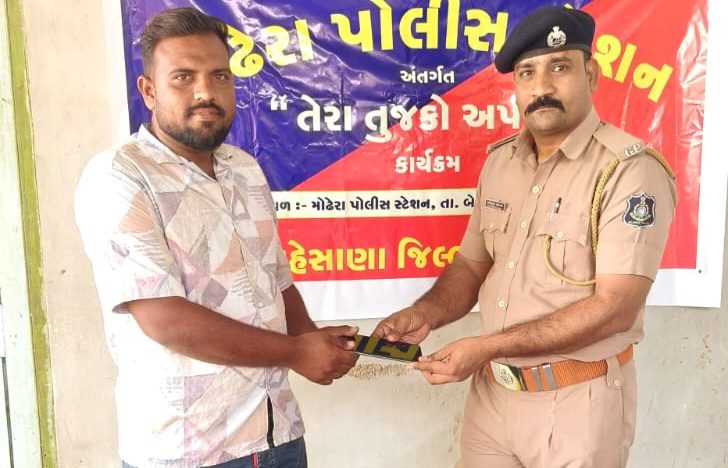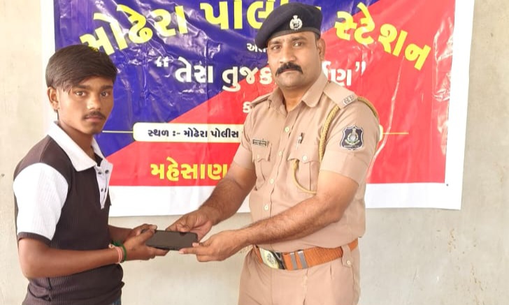 ગરવી તાકાત મહેસાણા : મોઢેરા પોલીસ સ્ટેશનની ટીમ દ્વારા હાથ ધરવામાં આવેલી વિશેષ કામગીરીના પરિણામે નાગરિકોમાં પોલીસ પ્રત્યેનો વિશ્વાસ વધુ મજબૂત બન્યો ‘તેરા તુજકો અર્પણ’ કાર્યક્રમ અંતર્ગત પોલીસે ટેકનોલોજીના માધ્યમથી ગુમ થયેલા મોબાઈલ ફોન શોધી કાઢી અને સાયબર ક્રાઈમનો ભોગ બનેલા લોકોને તેમના નાણાં પરત અપાવી ન્યાયિક કામગીરી કરી.